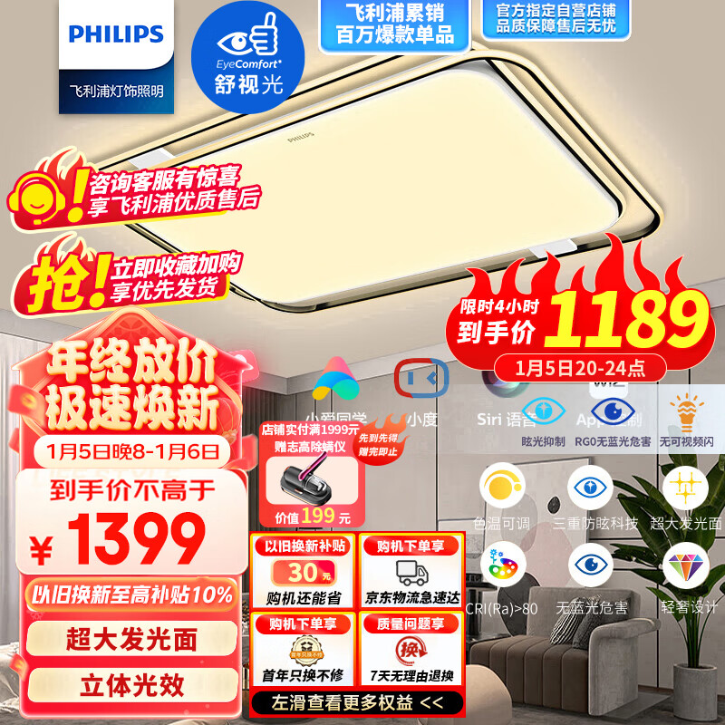 飞利浦(PHILIPS)led客厅灯卧室灯智能Wi-Fi 悦璃异型吸顶灯140W 9290032519价格:2199.00元!