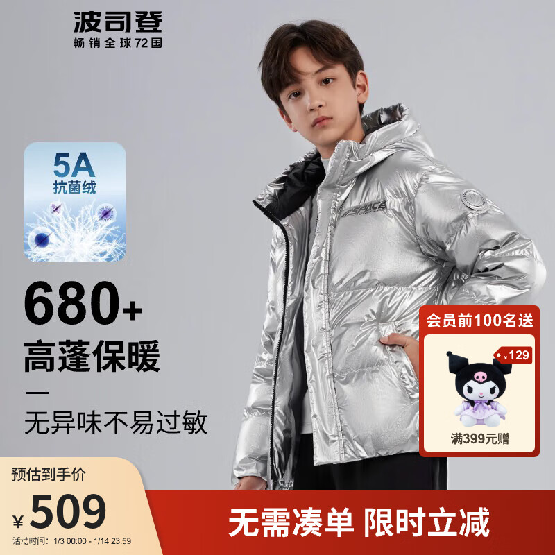 波司登(BOSIDENG)2023新冬儿童羽绒服男女童加厚连帽亲肤抗菌保暖面包服T30143730价格:549.00元!