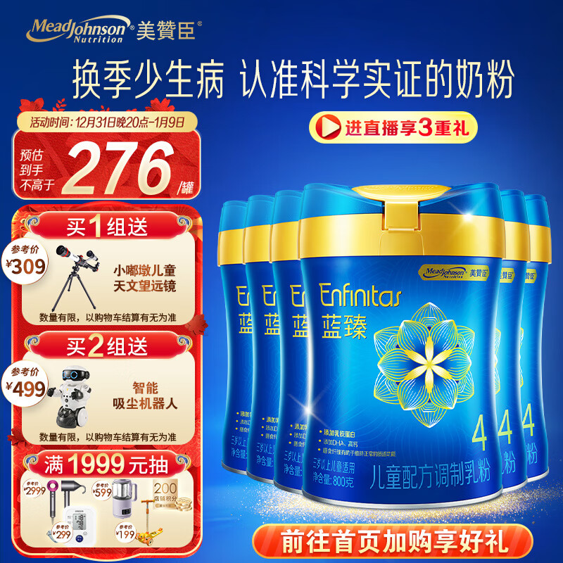 美赞臣蓝臻儿童配方调制乳粉4段(3岁以上) 800g*6多罐装 营养价格:1697.73元!