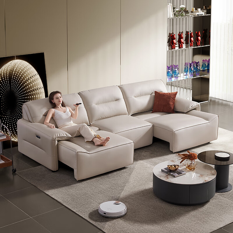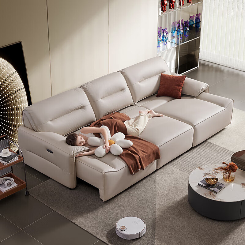 5、沙发摸起来不错,电动后真是一张大床,舒服