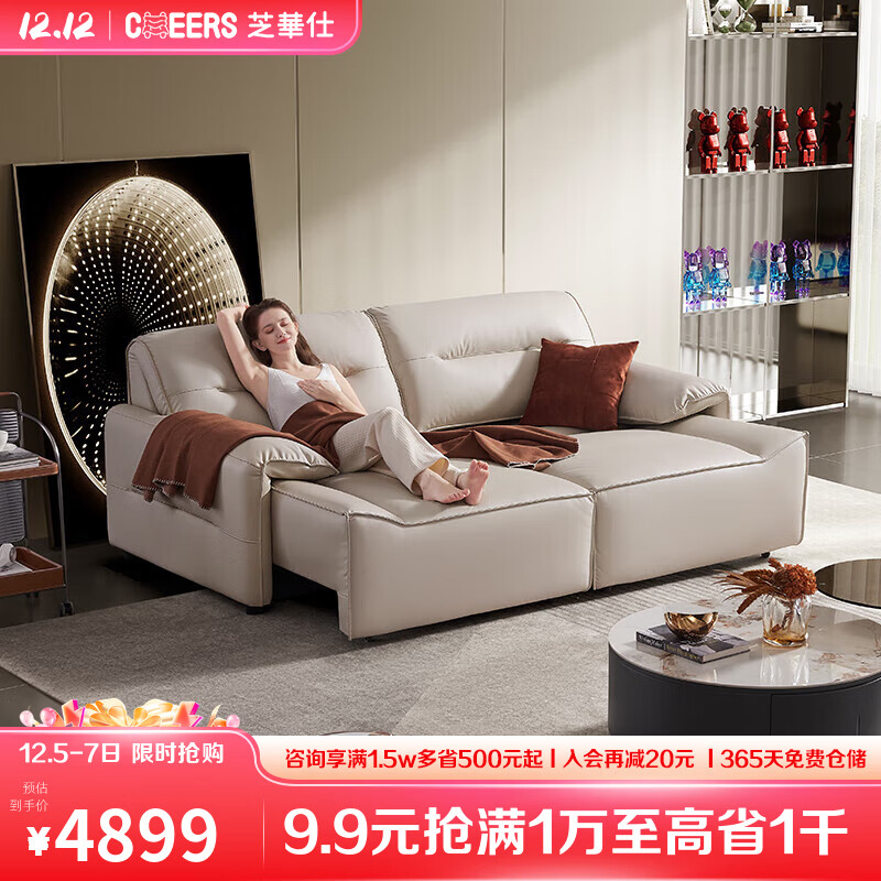 芝华仕(CHEERS)头等舱科技布沙发电动功能多功能两用伸缩沙发床 40272 双人位价格:4899.00元!