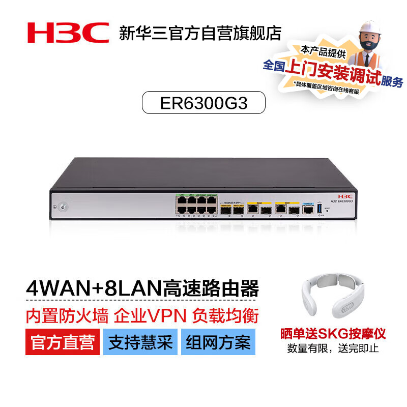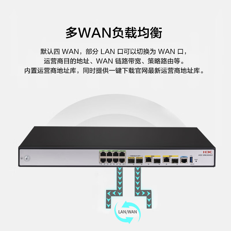 新华三(H3C)2*10 GE+2*GE Combo+8*GE高性能企业级有线路由器 带机700/内置防火墙/AP管理 ER6300G3价格:7499.00元!