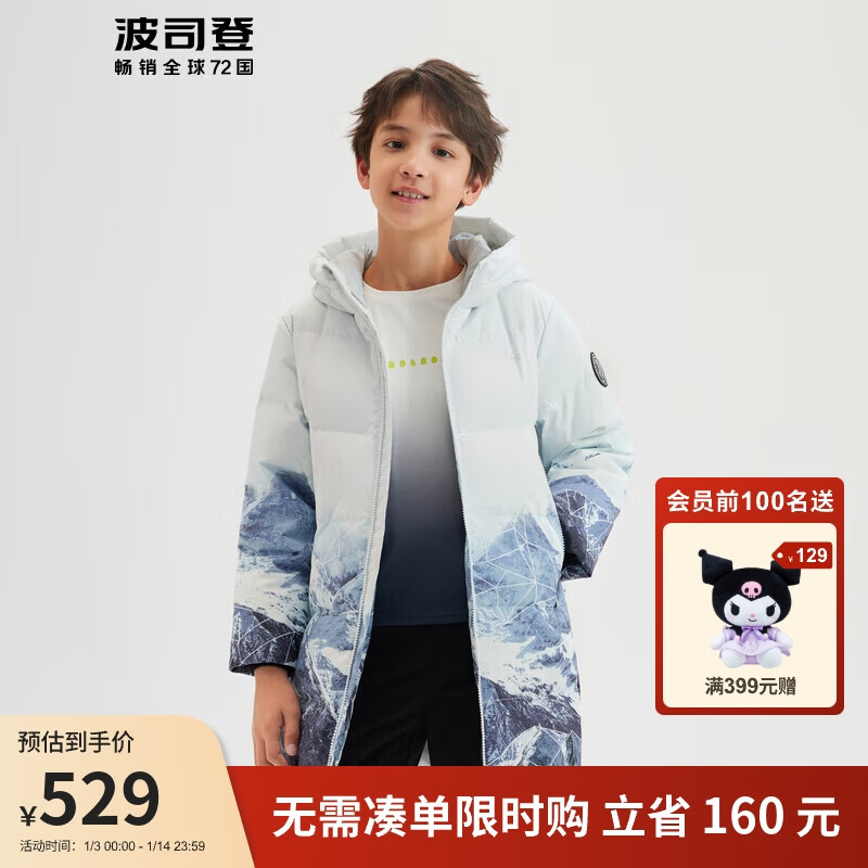 波司登童装冬季男女童羽绒服加厚连帽中长款90抑菌鸭绒儿童外套T20143140E价格:689.00元!