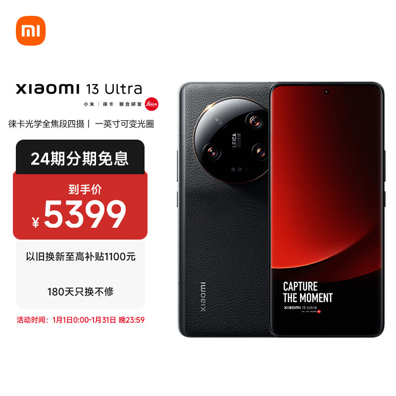 小米13Ultra 徕卡光学全焦段四摄 第二代骁龙8处理器 2K超色准屏 IP68防水 12+256GB 黑色 小米手机 5G手机价格:5399.00元!