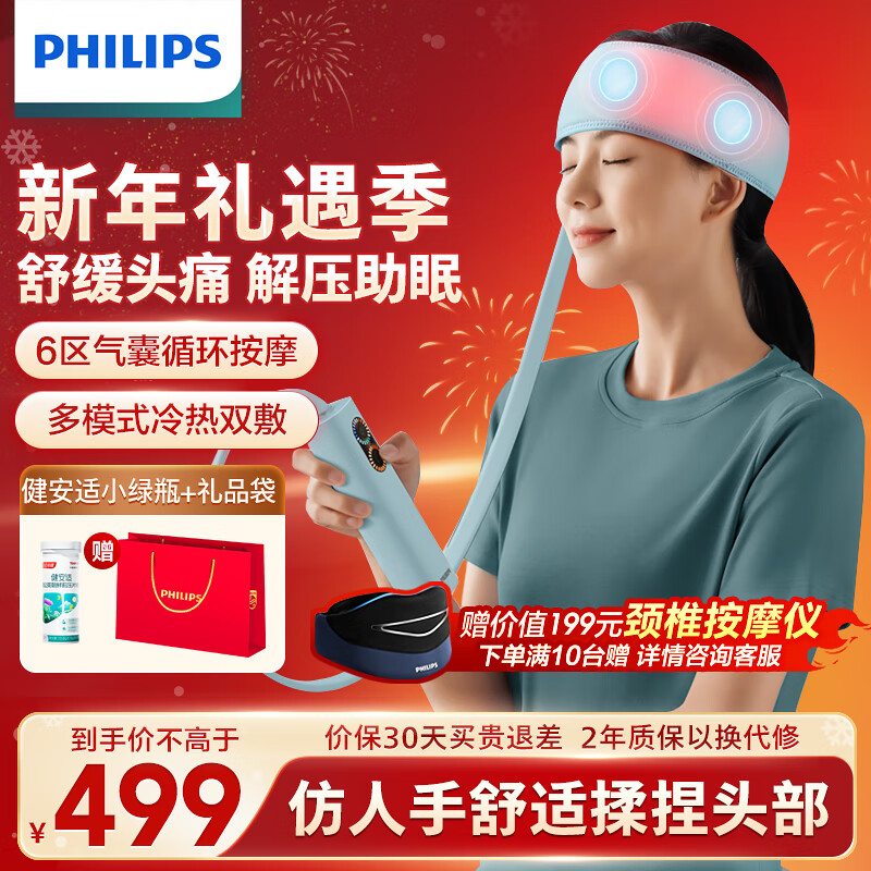 飞利浦(PHILIPS)头部按摩器 气囊按压冷敷热敷头部按摩仪无线便携按摩头带睡眠仪 年会礼品生日礼物 3201H价格:549.00元!