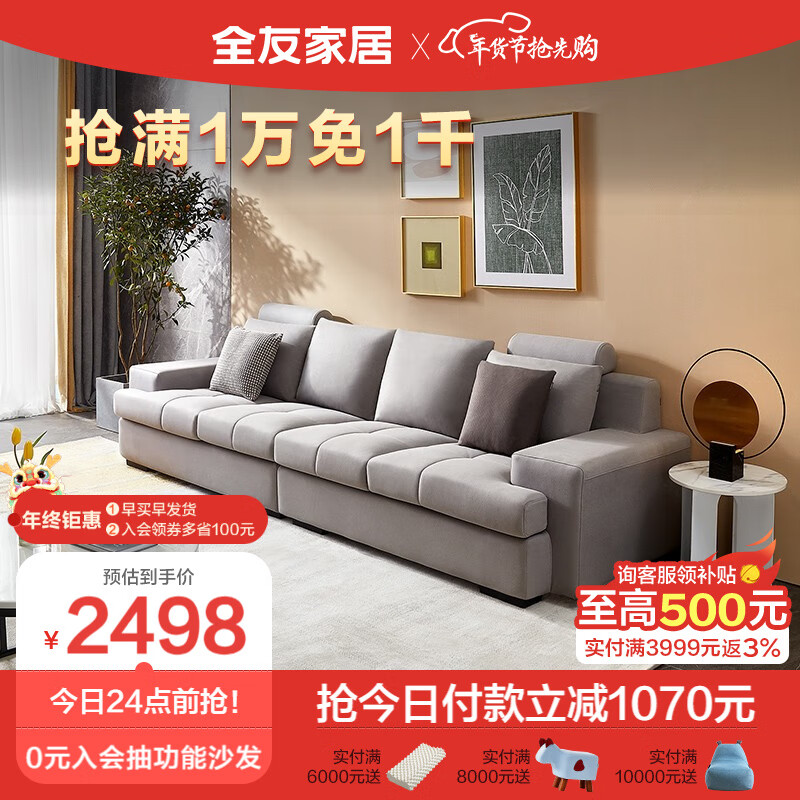 全友家居 现代简约布艺沙发 科技布面料可拆洗布艺沙发组合102117B 布艺沙发(左2+右2)价格:3568.57元!