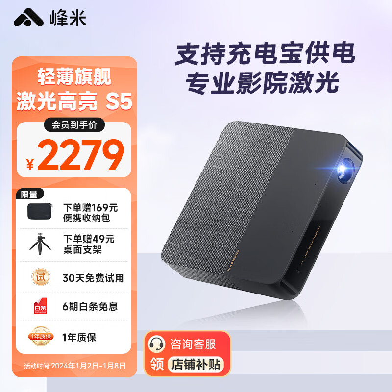 峰米S5 激光投影仪家用 家庭影院超高清电视 便携手机投影机(ALPD影院激光 天龙音响 可连充电宝)价格:2299.00元!