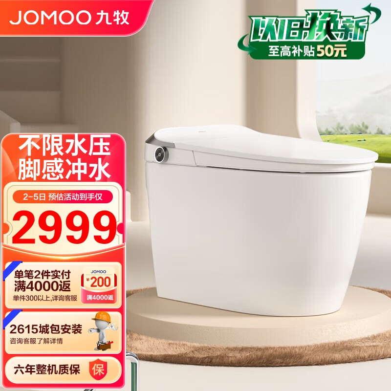 九牧(JOMOO)智能马桶一体机带水箱不限水压脚感冲水智能坐便器ZS520I 400坑距价格:3699.00元!