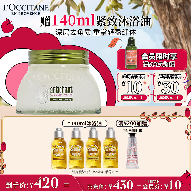 欧舒丹洋蓟身体磨砂膏200ml温和去角质滋润补水保湿紧致男女士护肤礼盒价格:430.00元!