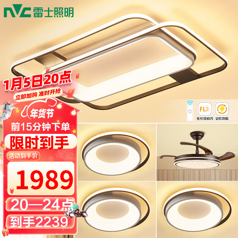 雷士(NVC)吸顶灯 后现代创意灯具温馨浪漫客厅灯卧室灯餐厅灯具套餐 环宇价格:2699.00元!