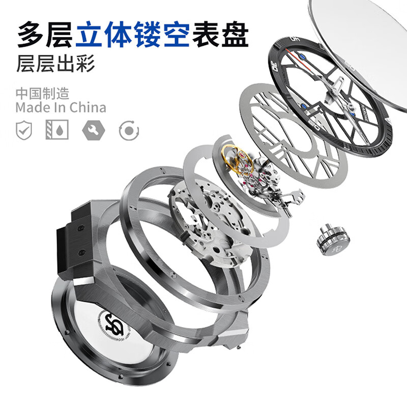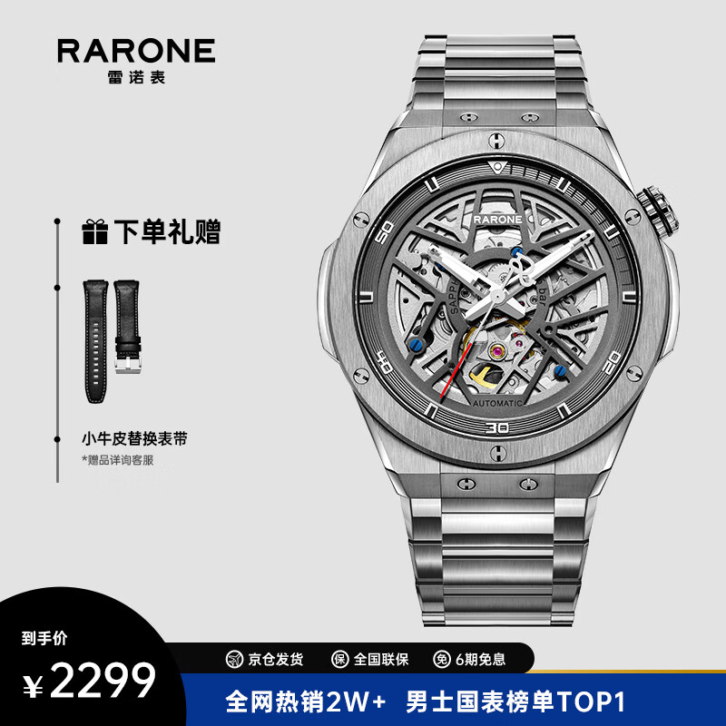 雷诺(RARONE)手表 解构派双子星RebelX男士机械手表钢带腕表送男友价格:2399.00元!