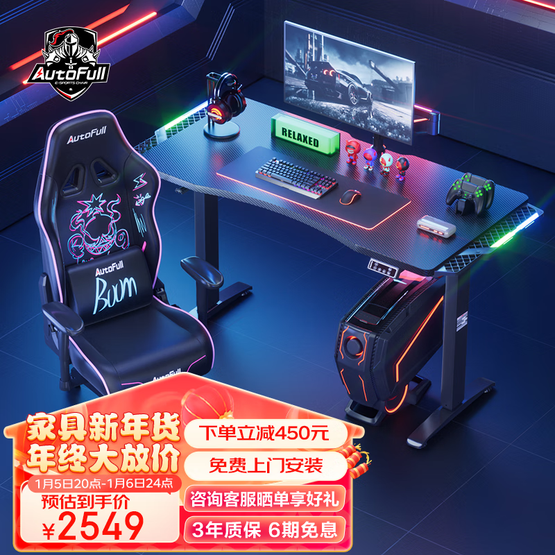傲风A4电竞桌椅套装 电动升降桌 电脑桌游戏桌家用办公书桌 1.4m桌面 价格:2999.00元!