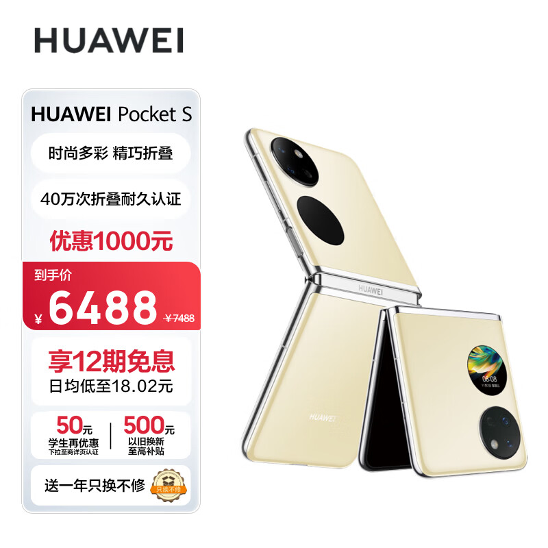 HUAWEI Pocket S 折叠屏手机 40万次折叠认证 512GB 樱草金 华为小折叠价格:5988.00元!