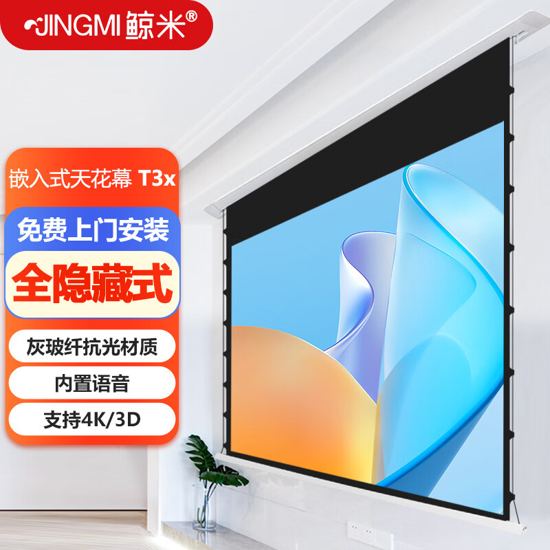 鲸米(JINGMI)投影幕布T3X灰玻纤100英寸16:9隐藏嵌入式天花幕布电动拉线遥控语音家用客厅卧室投影仪屏幕价格:3199.00元!