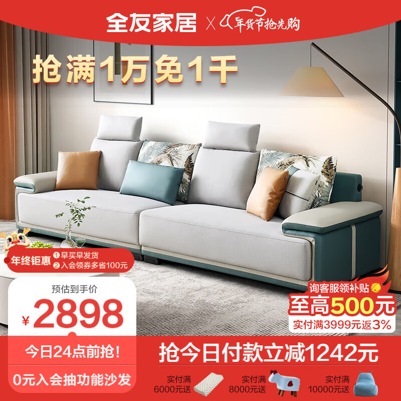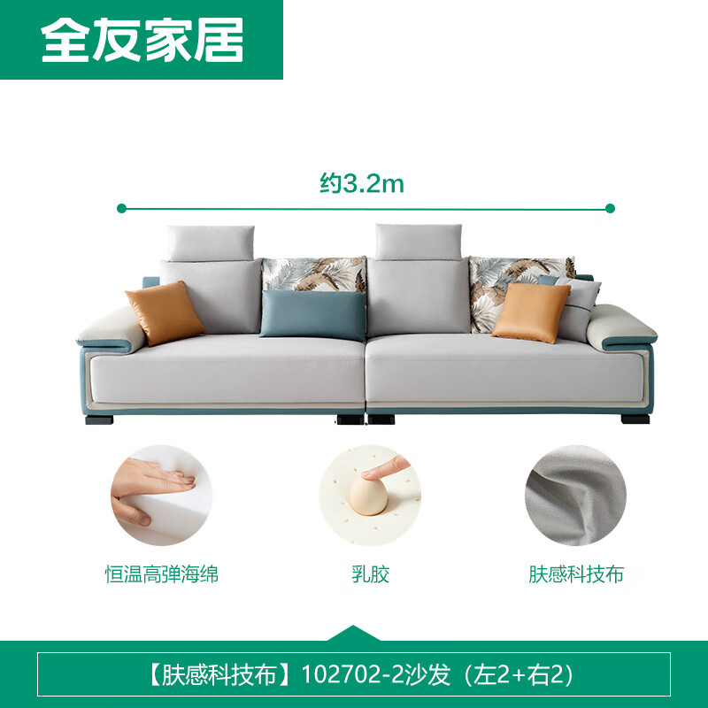 全友家居 沙发现代简约皮布沙发可拆洗科技布艺沙发客厅家具102702价格:4140.00元!