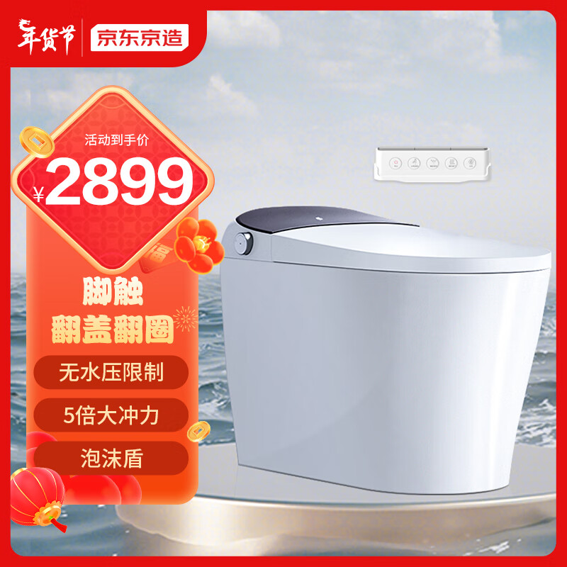 京东京造黑鲸W2.0智能马桶一体机 无水压限制 带水箱坐便器 脚感翻盖翻圈价格:3199.00元!