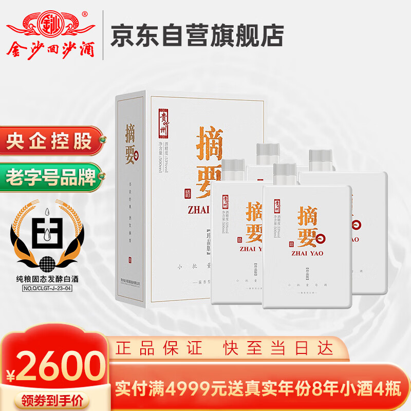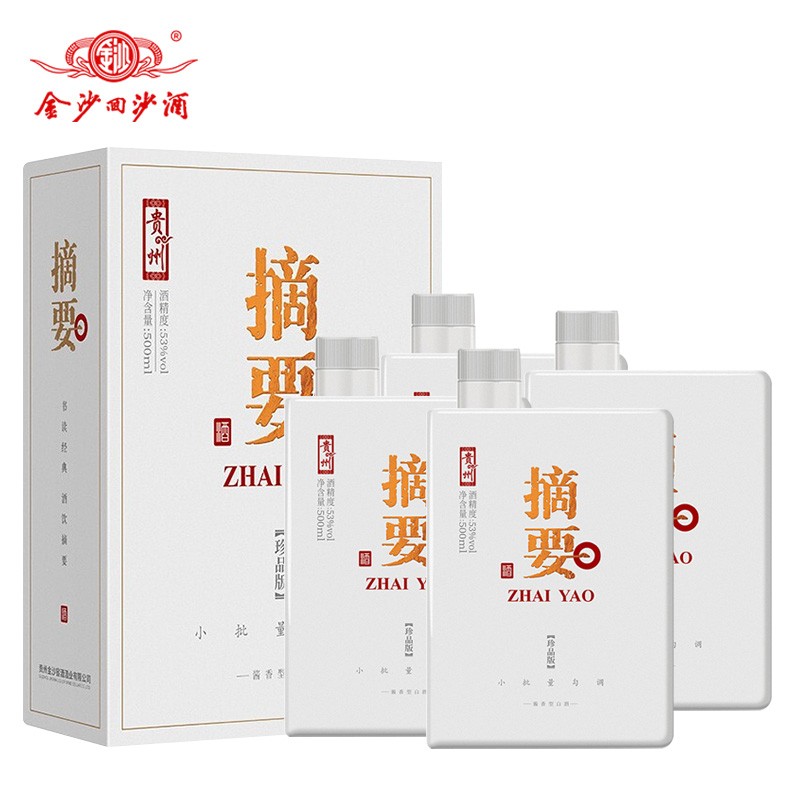 金沙回沙酒 摘要 珍品版 酱香型白酒 53度 500ml*4瓶 整箱装 纯粮食酒价格:2630.00元!