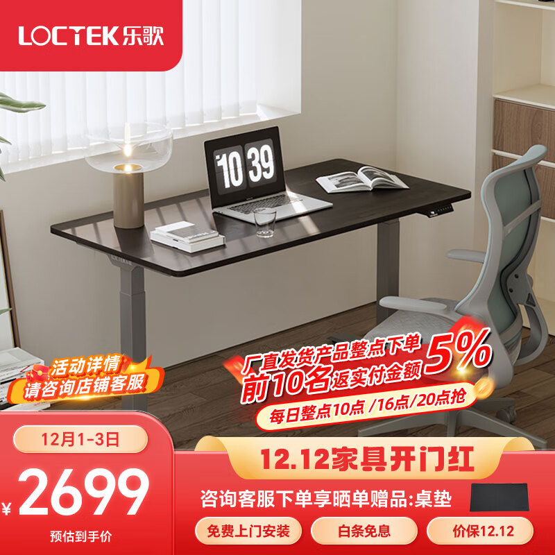 乐歌电动升降桌电脑桌站立办公学习桌 E3/1.8m 实木黑胡桃木色套装价格:2699.00元!