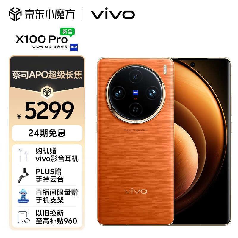 vivo X100 Pro 16GB+256GB 落日橙 蔡司APO超级长焦 蓝晶×天玑9300 5400mAh蓝海电池 自研芯片V3 拍照 手机价格:5299.00元!