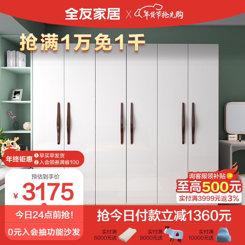 全友家居 衣柜北欧风平开门衣柜半定制灵活组合卧室衣橱121807价格:4535.71元!