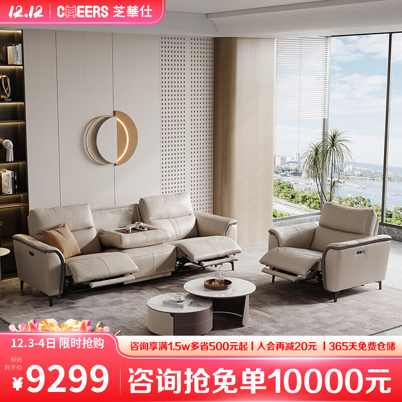芝华仕(CHEERS)头等舱真皮沙发现代简约电动功能影院 40262 (3+1)纳瓦白A价格:9299.00元!
