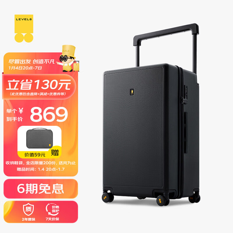 地平线8号(LEVEL8)行李箱 男女密码大容量万向轮26英寸宽拉杆大旅行家PC拉杆箱 黑色价格:999.00元!