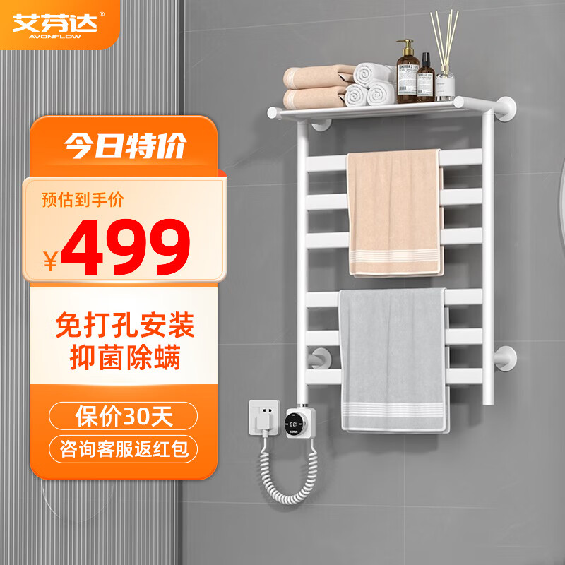 艾芬达(AVONFLOW)电热毛巾架免打孔浴室毛巾衣物烘干智能置物架 GD22白-左出线价格:499.00元!