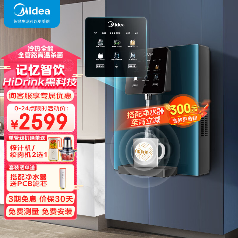 美的(Midea)家用净水器伴侣管线机 记忆智饮触控 全通量匹配 高温杀菌 壁挂式直饮 速热饮水机MG908-D升级款价格:2599.00元!