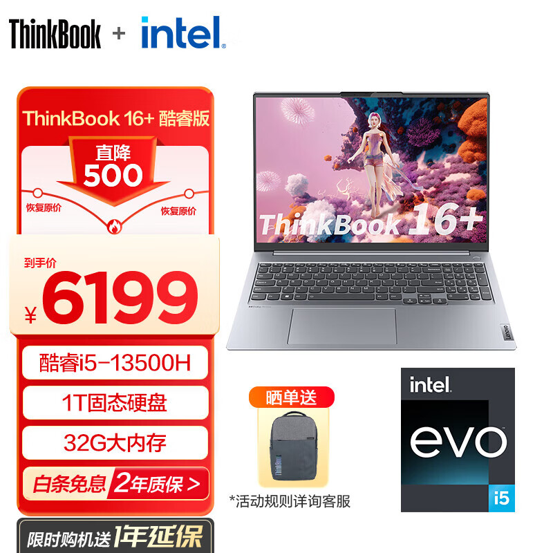 ThinkPad 联想ThinkBook 16+ 13代英特尔Evo酷睿标压处理器 16英寸轻薄笔记本电脑 2.5K 【升级】i5-13500H 32G 1T 0NCD价格:6699.00元!