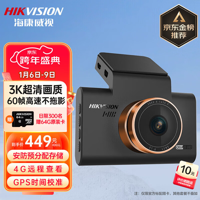 HIKVISION海康威视行车记录仪C6Pro+ 3K超高清星光夜视 GPS自动校时4G远程价格:469.00元!