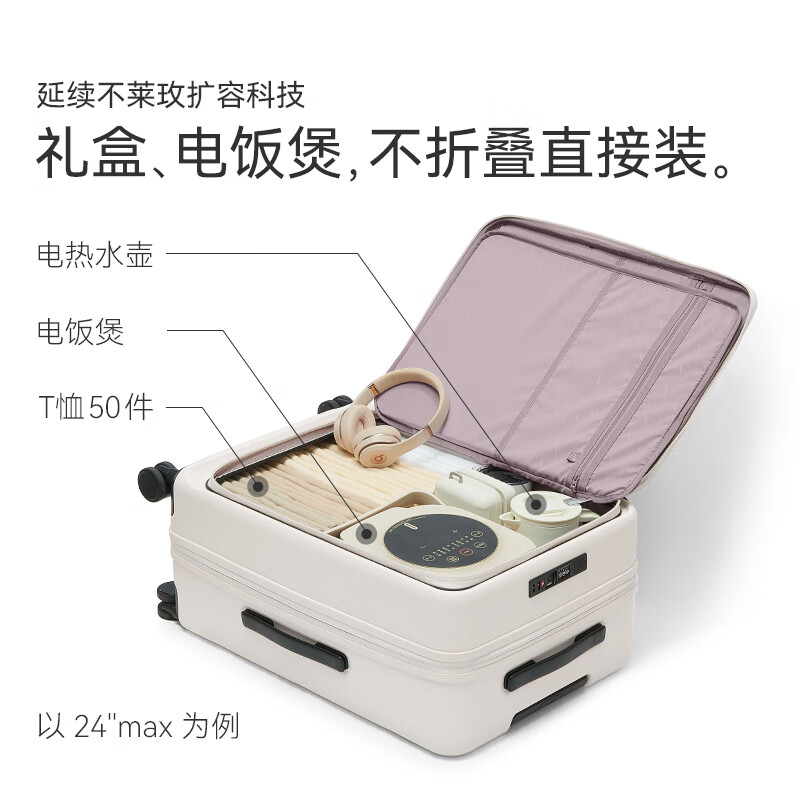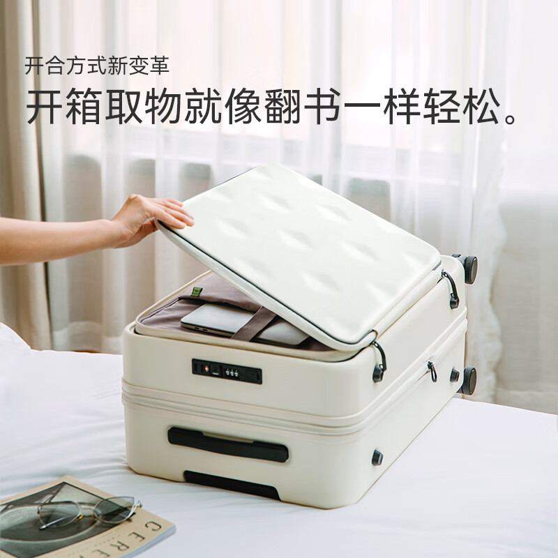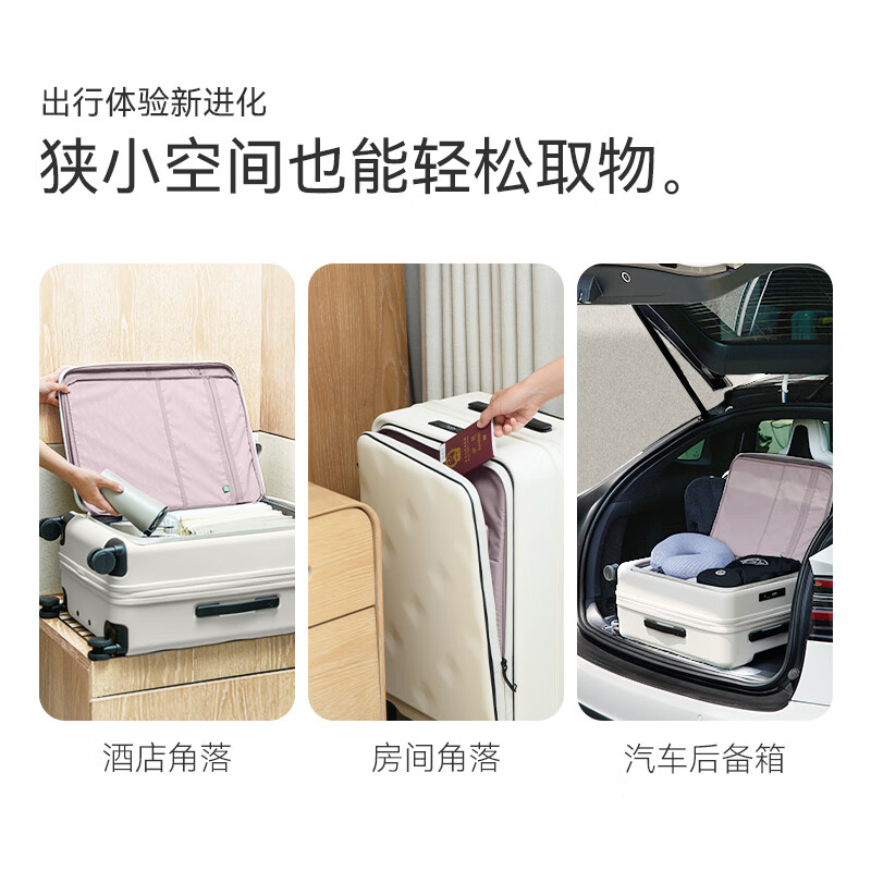 5、之前买了一个26寸的,赶在双十一又买了这个20寸的,专门挑选了这款可侧开的,拿取东西很方便,还带充电线和杯架,功能实用很喜欢,这款可直接登机用,颜值质量都不错,满意??