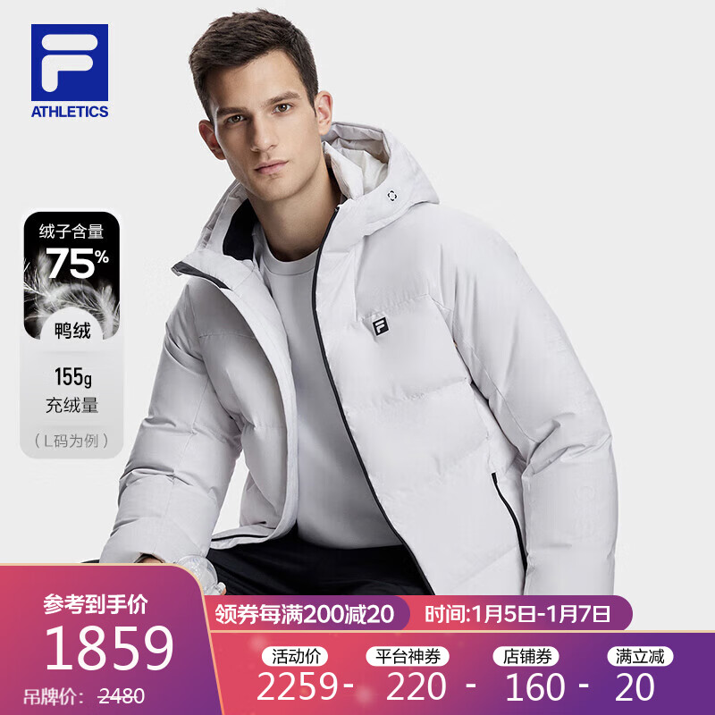 FILA 斐乐官方男士羽绒服2023冬基础健身篮球运动连帽上衣价格:2259.00元!