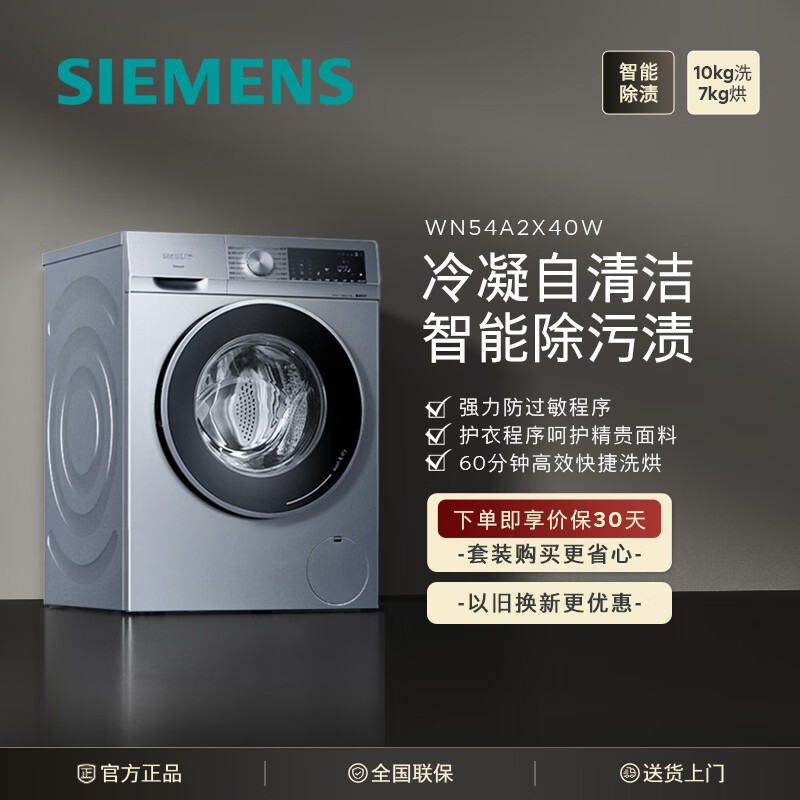 西门子(SIEMENS)10公斤变频滚筒洗衣机全自动 洗烘一体机 智能除渍 蒸气除螨 智能烘干XQG100-WN54A2X40W价格:4799.00元!
