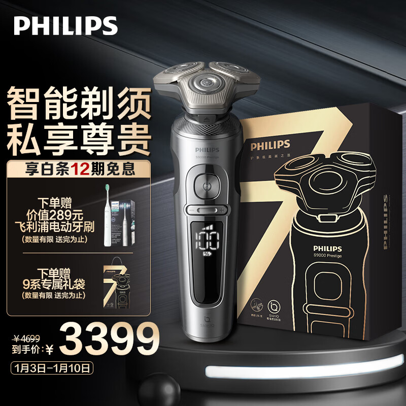 飞利浦(PHILIPS)电动剃须刀蜂巢奢享9系 SkinIQ肌能感应刮胡刀 新年礼物 送男友 送老公【整机荷兰进口】价格:3599.00元!