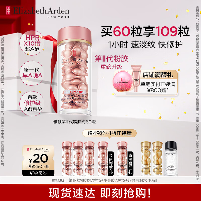伊丽莎白雅顿第II代粉胶次抛A醇精华胶囊28ml淡纹紧致礼物送朋友价格:790.00元!