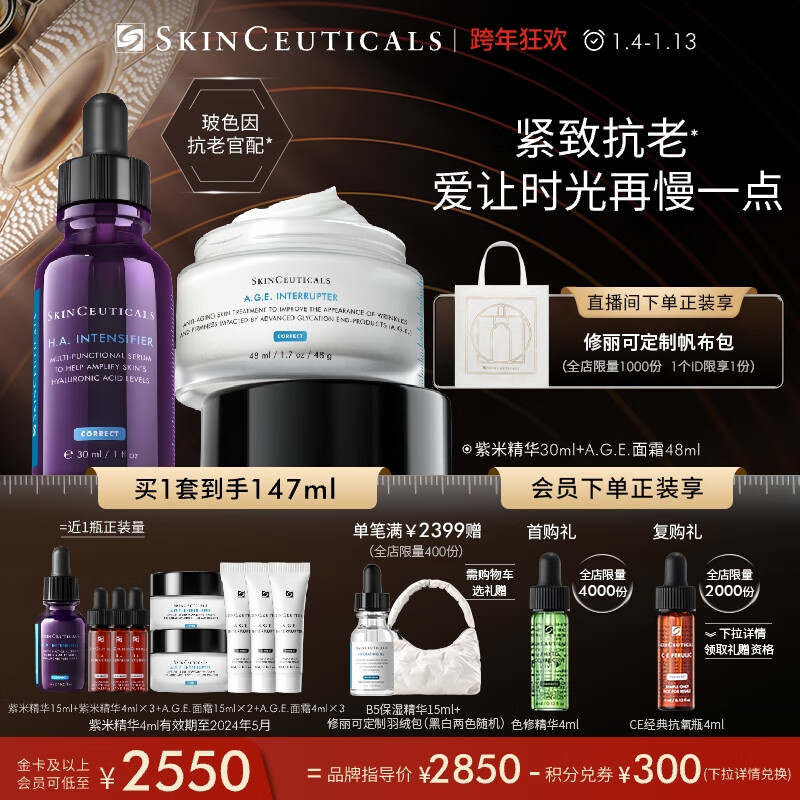 修丽可紫米30ml+AGE面霜48ml护肤品套装玻色因抗糖老修护元旦礼物女价格:2850.00元!