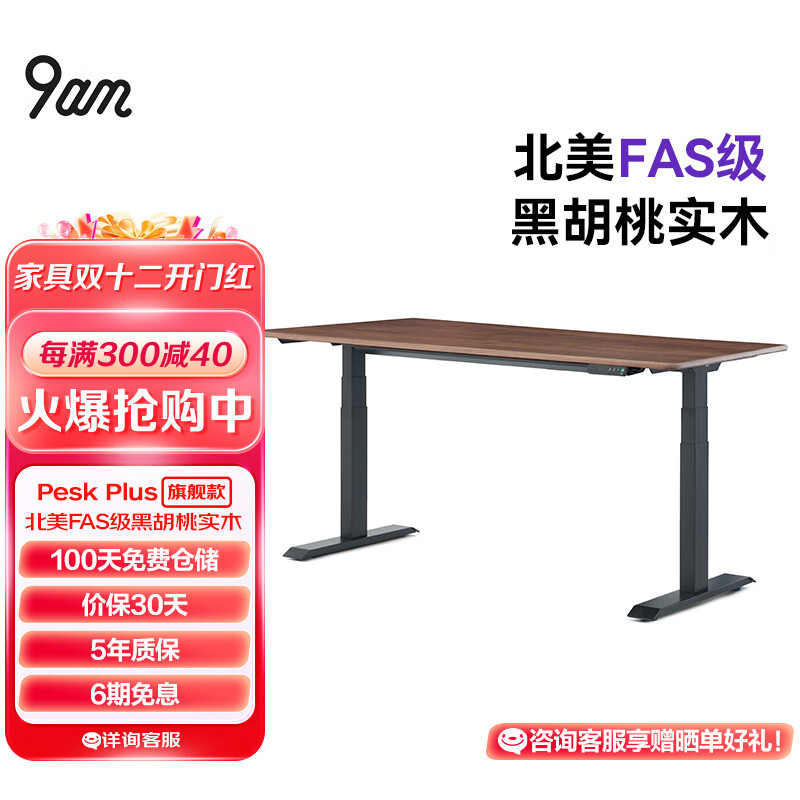 9am智能电动升降桌Pesk Plus 北美黑胡桃实木 站立办公桌老板桌 1.4m价格:9299.00元!