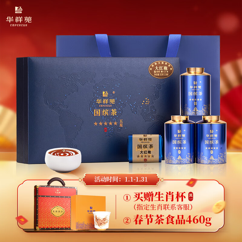 华祥苑 正岩大红袍茶叶 特级武夷山岩茶 高端送礼礼盒装 国缤茶83g价格:2280.00元!