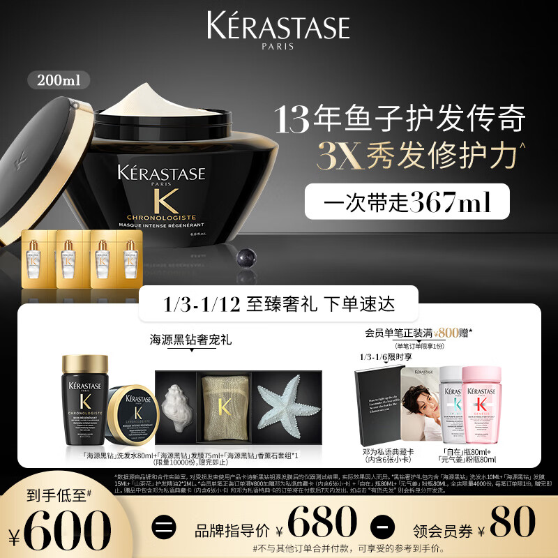 卡诗【邓为同款】海源黑钻发膜200ml护发烫染受损强韧修护柔顺水润价格:680.00元!