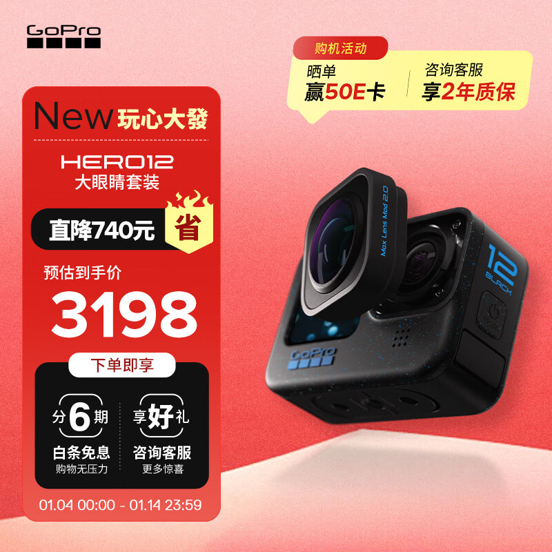 GoPro HERO12运动相机 户外摩托骑行水下防水相机 潜水照相机 Vlog数码运动防抖摄像机 大眼睛套装价格:3198.00元!