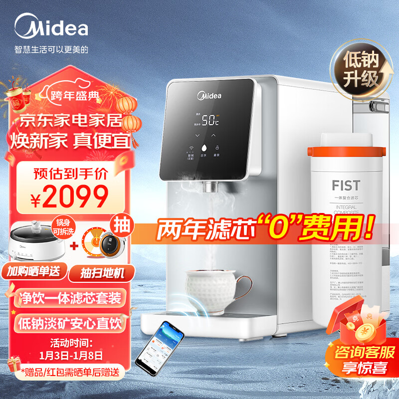 美的(Midea)白泽Pro台式净水器净饮机饮水机即热式直饮机净饮一体机远程智控RO反渗透低钠 JR2183T-RO滤芯套装价格:2099.00元!