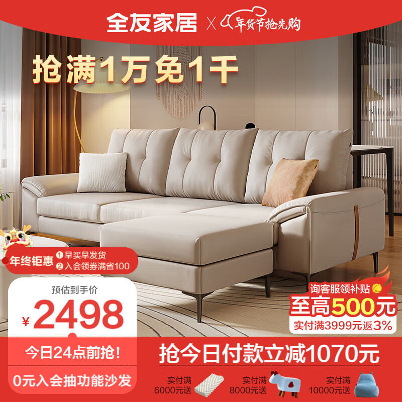 全友家居 沙发奶油风科技布沙发客厅中小户型大象耳朵直排座具111037B价格:3568.57元!