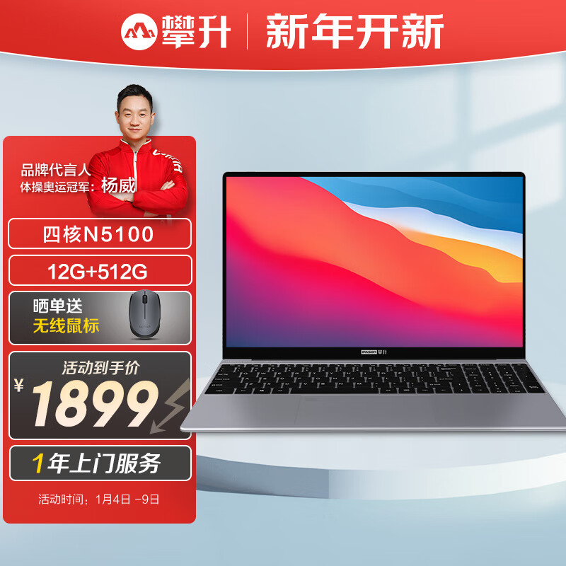 攀升【杨威推荐】2023款P2 Pro英特尔四核15.6英寸低蓝光高性能笔记本电脑游戏大学生网课设计学习办公手提轻薄本价格:1899.00元!