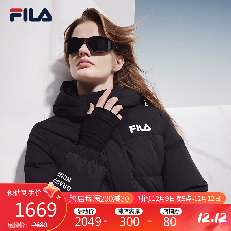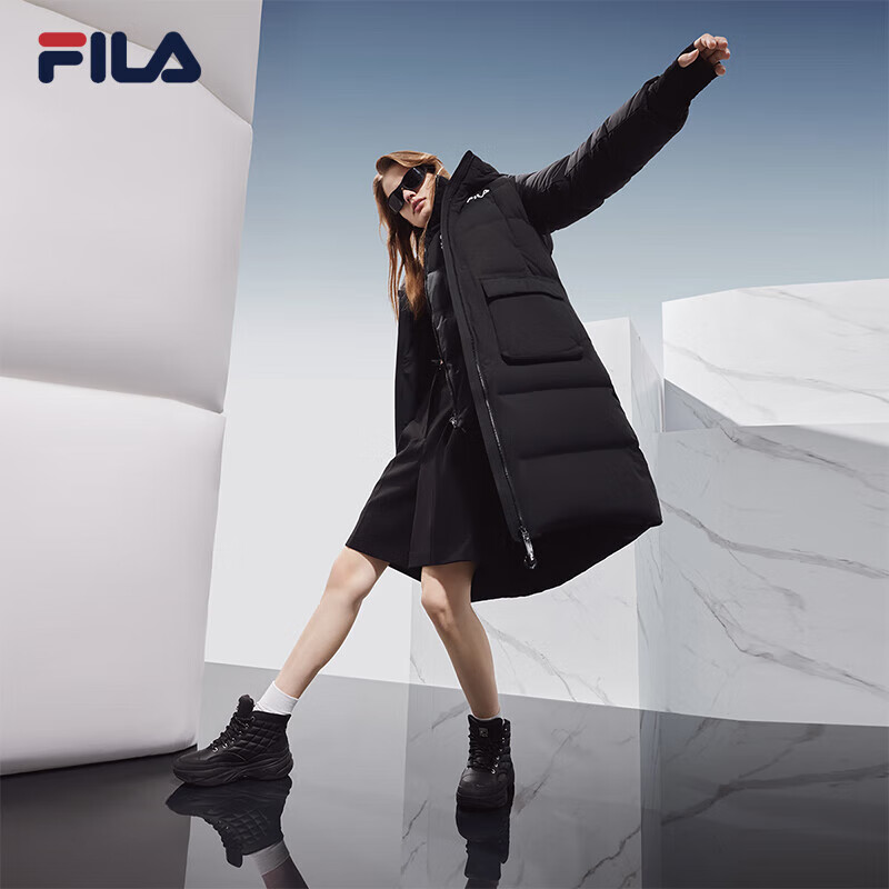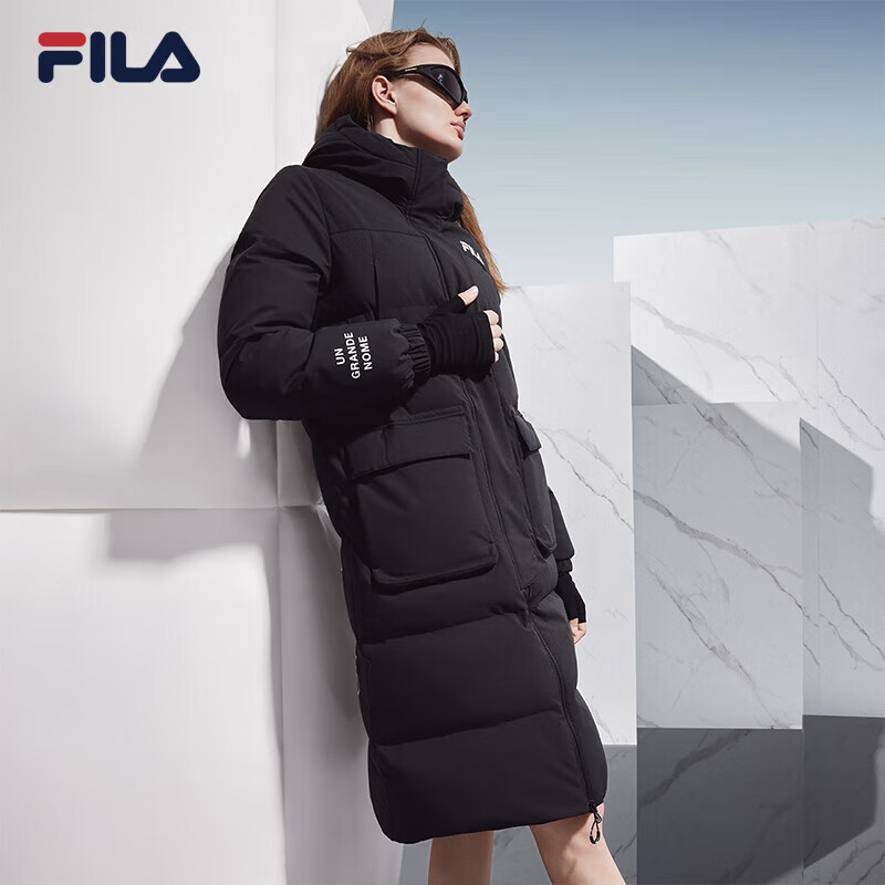 FILA 斐乐官方女子长款羽绒服2023时尚简约连帽保暖上衣价格:2149.00元!