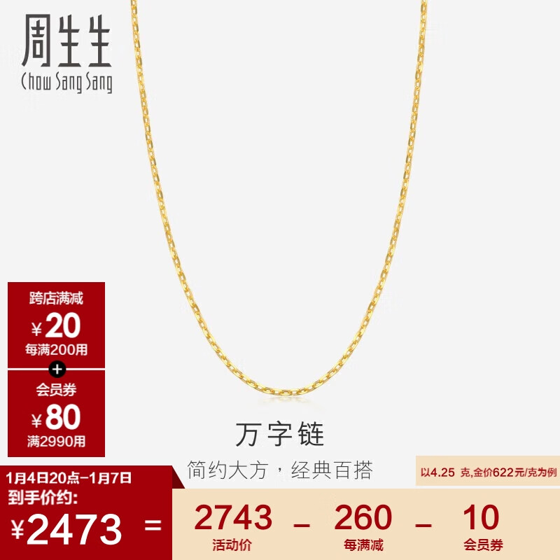 周生生黄金项链 足金万字素链百搭锁骨链女款09251N计价45厘米4.25克价格:2743.00元!