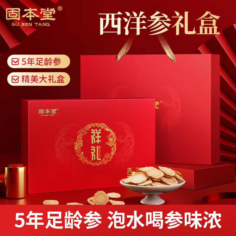 固本堂 西洋参片礼盒90克(15g*6罐)营养品送礼父母长辈实用礼物 人参粉含片用处泡水年货礼盒价格:222.86元!