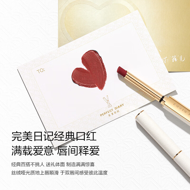 1、完美日记作为平价口红,他的包装一点都不廉价,而且越来越高级,皮质的外管,采用了镜面金属与皮质的结合,拿到手上就感觉有重量感,显的很高级,口红质地是特别高级的哑光丝城,重点是上嘴不拔干,育体十分顺滑,持久度也很好。
