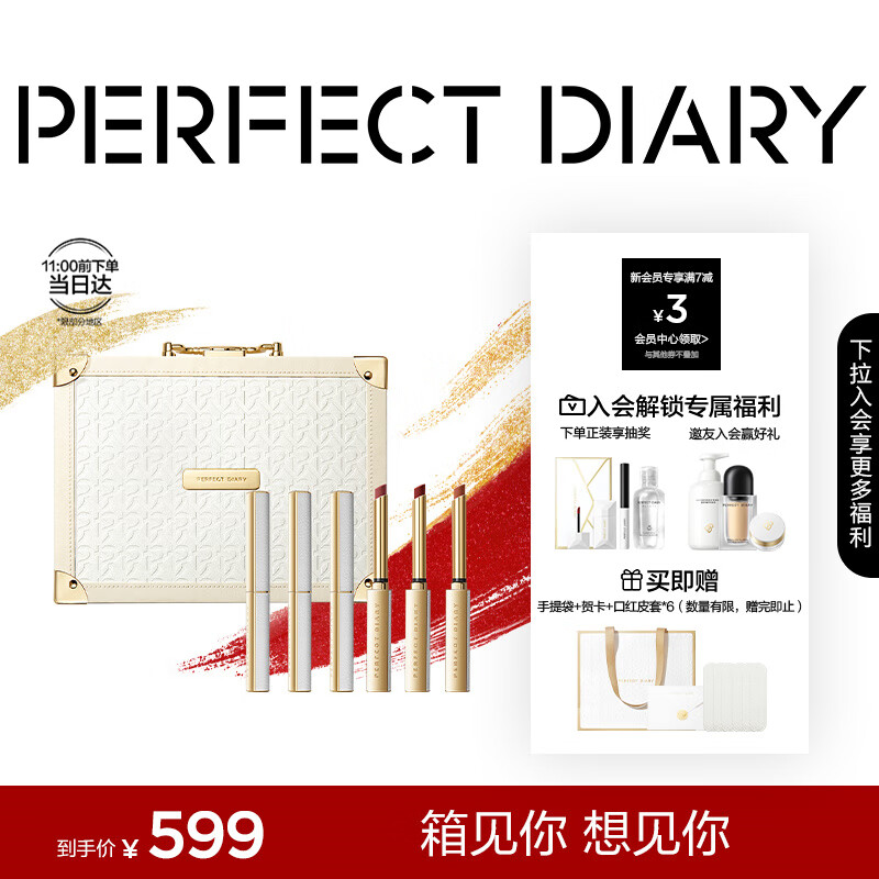 完美日记小细跟皮箱礼盒03小细跟口红显白*6丝绒哑光新年礼物生日送女友价格:599.00元!