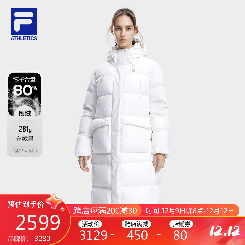 FILA 斐乐官方女士长款羽绒服2023冬季鹅绒保暖外套运动加厚上衣价格:3249.00元!