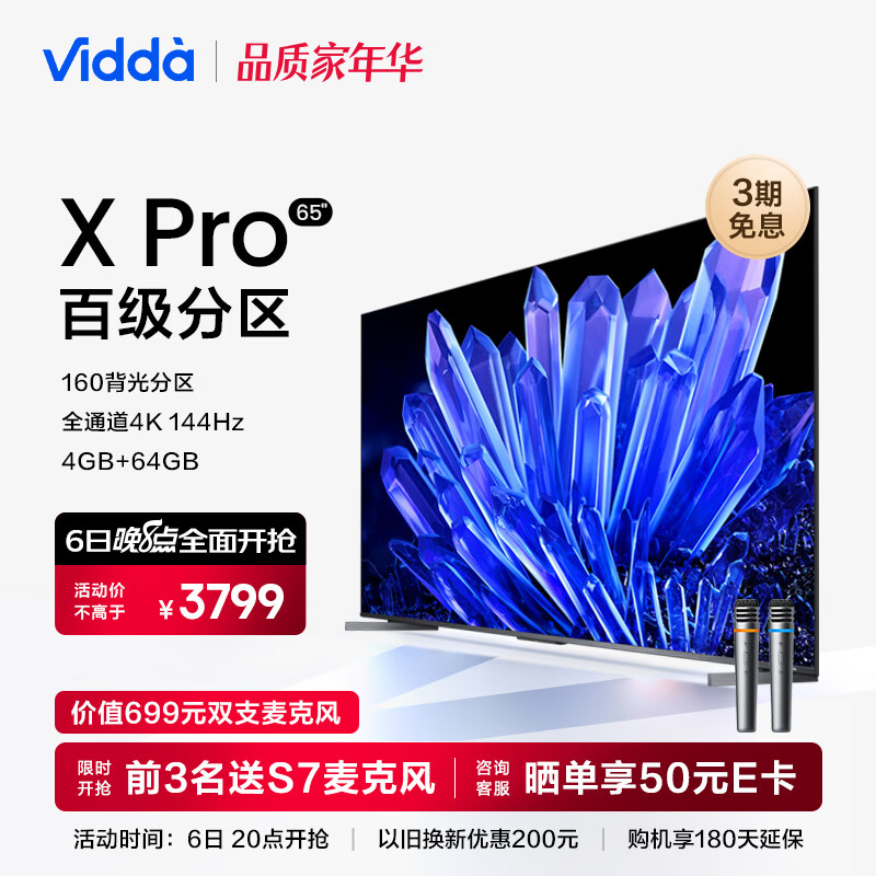 Vidda X65 Pro 海信 65英寸 144Hz游戏电视 160背光分区 屏 4G+64G 智能液晶巨幕以旧换新65V3K-PRO价格:4899.00元!